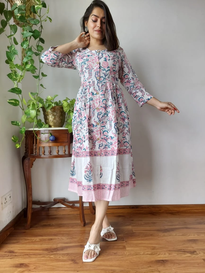 All New Exclusive Collection of Hand Printed Long ( Penal ) One Piece Dress "π in Multiple Beautiful Colours With Pocket ππ