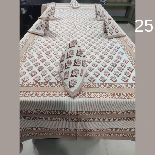 Hand Block Printed 6 Seater Table Cover With 6 Full Printed Napkins