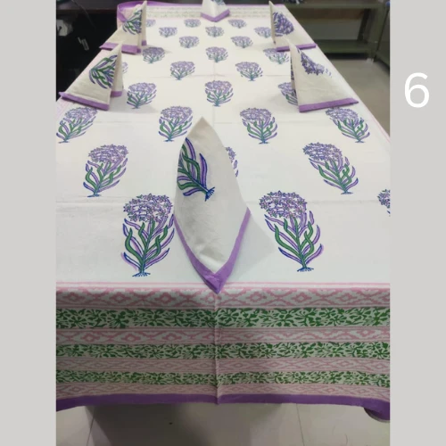 Hand Block Printed 6 Seater Table Cover With 6 Full Printed Napkins