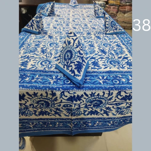 Hand Block Printed 6 Seater Table Cover With 6 Full Printed Napkins
