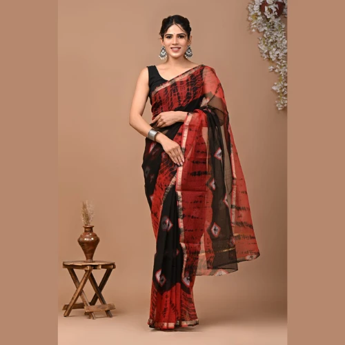 Hand Block Printed Pure Kota Doria Saree with Blouse Piece.