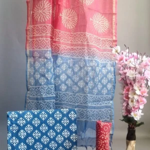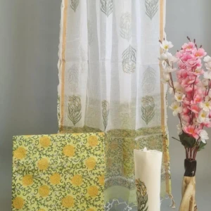 Kota Doria Dupatta Suit Materials in fine Hand Block Print