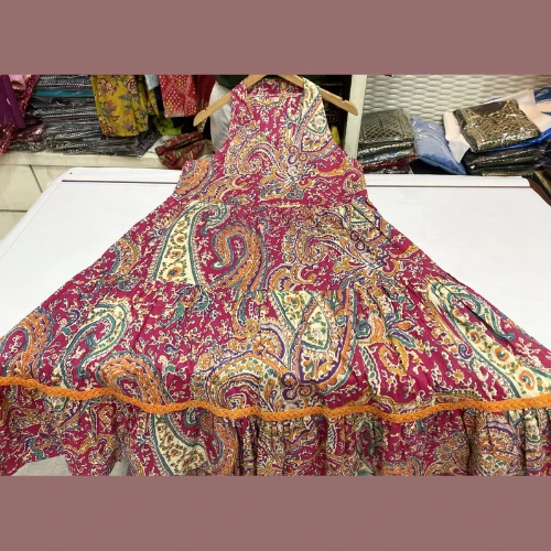 🎁 Beautiful Heavy Cotton Fabric Printedkk Pink Full Gown in Multi Colour