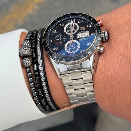 ⭐ The sleek, heritage-style design of the TAG Heuer Carrera Calibre 16 Day-Date hearkens back to the collection’s earliest racing roots. The uncluttered, all-black dial is legible in even the most challenging conditions. ⭐