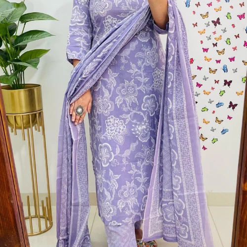 Designer Suit in Azrak/Mughal/Kalamkari Fusion Azrak bagru print kurti pant dupatta set Premium fine cotton with handcrafted work on yoke paired with fine dupatta with tassels on dupatta....