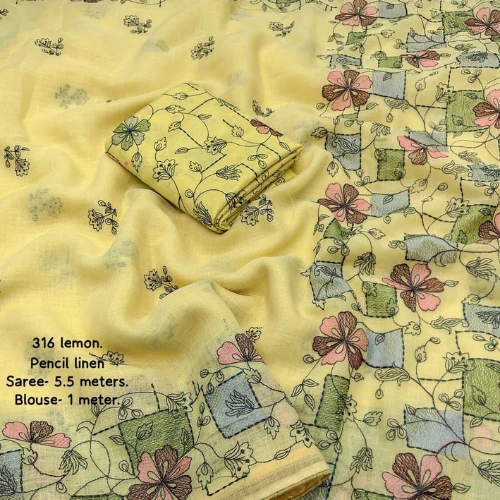 Quality- soft linen by line saree with beautiful pencil stich embroidery