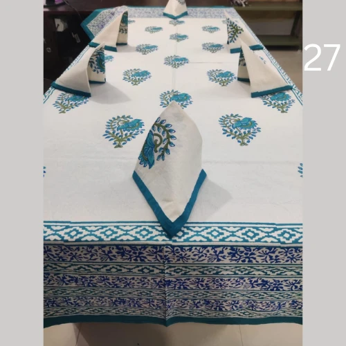 Hand Block Printed 6 Seater Table Cover With 6 Full Printed Napkins