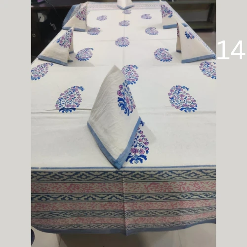 Hand Block Printed 6 Seater Table Cover With 6 Full Printed Napkins