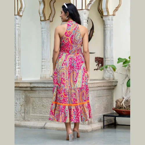 🎁 Beautiful Heavy Cotton Fabric Printedkk Pink Full Gown in Multi Colour