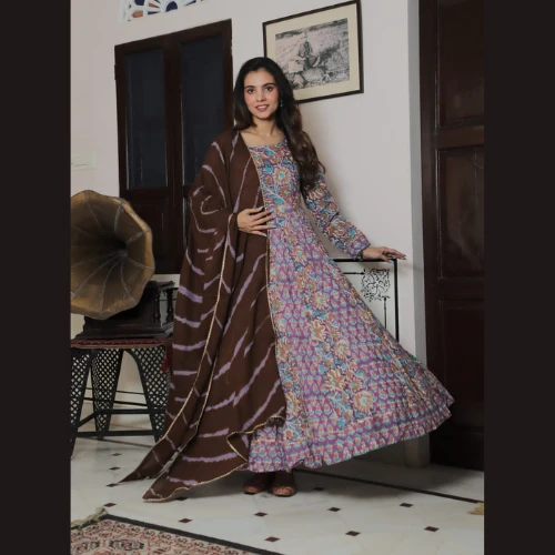 Printed Cotton Designer Anarkali with Mulmul Duptta